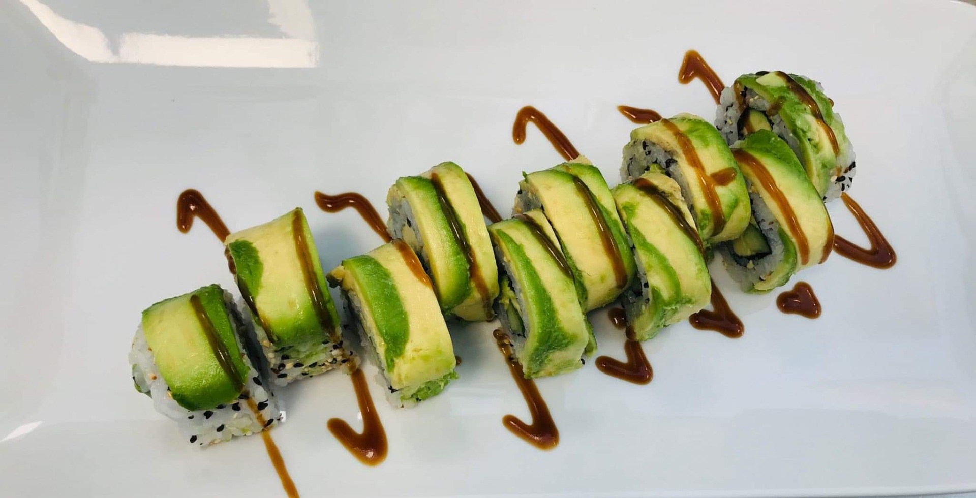 Gurka, avokado, toppad med avokado och teriyakisås